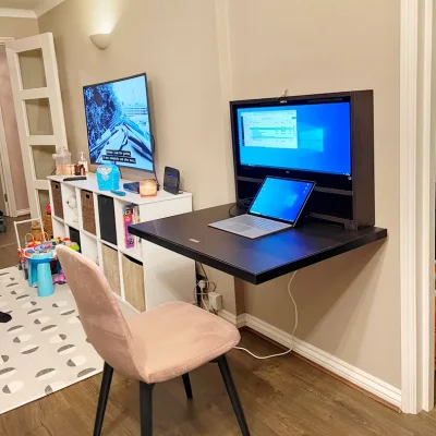 A smart and stylish WFH desk that doubles as an attractive picture on the wall, seamlessly disappearing when not in use.