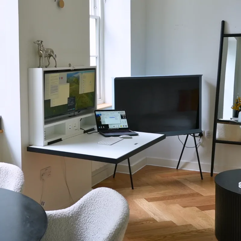 One of the standout features of the DropTop™ table is its ease of installation. You don’t need to be a DIY expert to install it. The murphy table comes with clear instructions, and you can opt for a fully assembled desk, complete with monitors and tech – or the flat pack version for easy home assembly. In no time, you’ll have a functional desk ready to use.