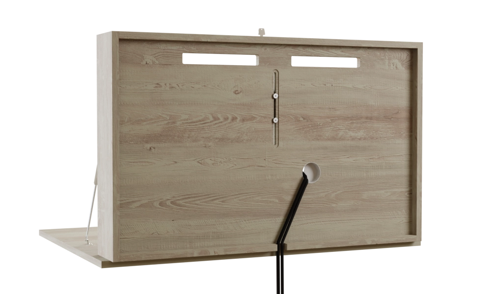 The DropTop Light fold-down desk range is designed as a flat-pack range made for easy home assembly. It is a lighter and more economical design that allows for the installation of your own monitors. The stays provide added support for the top when it is open, making them an integral part of the design and unable to be removed.