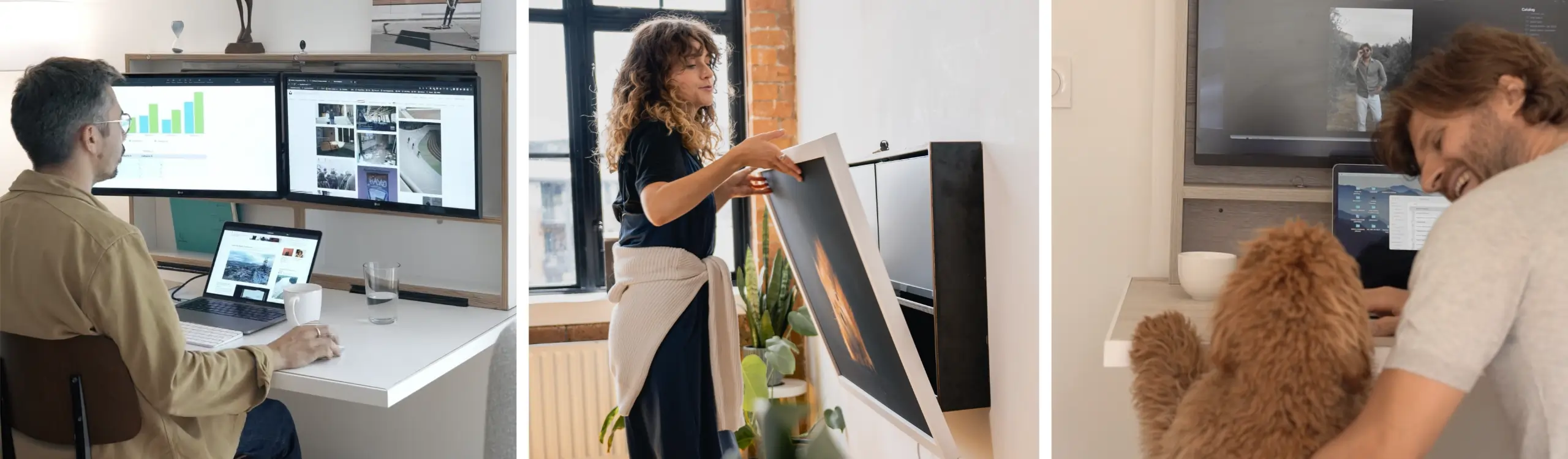 Equipped with built-in shelves, drawers, and cable management, foldable wall desks can morph your living space into a creative, organized workspace. The DropTop.TM Desk even comes with support for a pre-installed Docking Station, allowing you to connect up to three extended displays through a single USB-C cable.