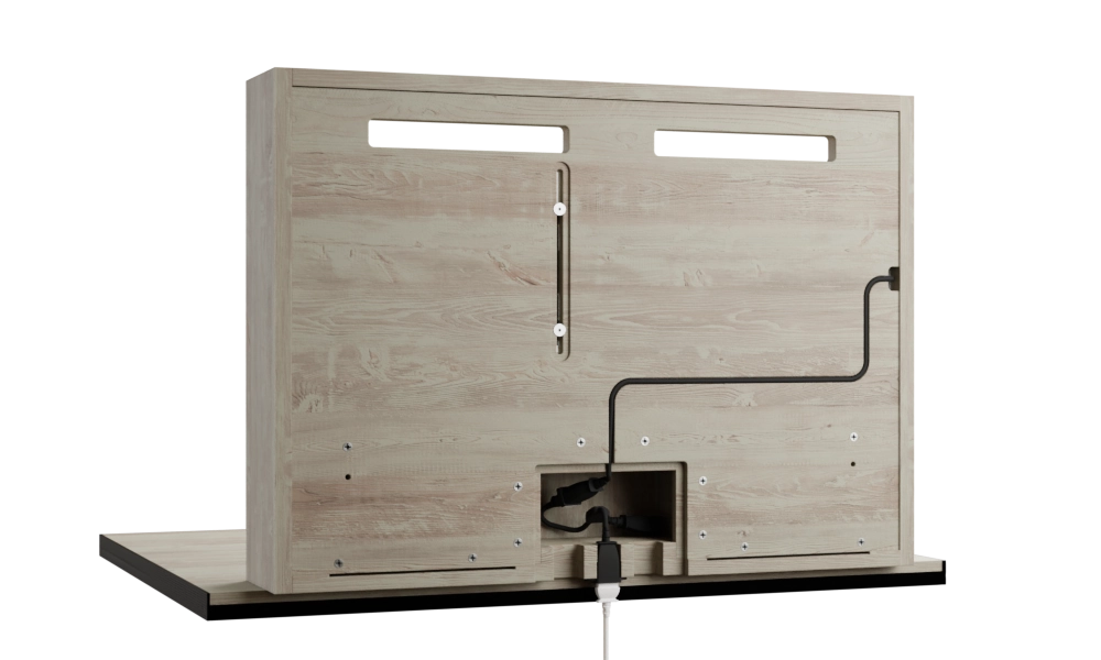 DropTop™ by Pith & Stem is a wall-mounted folding desk with integrated monitors and cable management, offering a unique and customizable solution for small spaces. This innovative design not only saves space but also provides a clutter-free and efficient workspace solution that is perfect for those working with limited square footage.