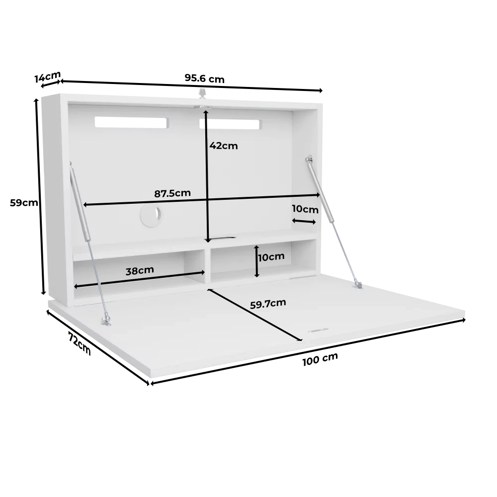 • Monitor space W: 87.5cm x H: 42cm x D: 5-8cm dependant on monitor mount*