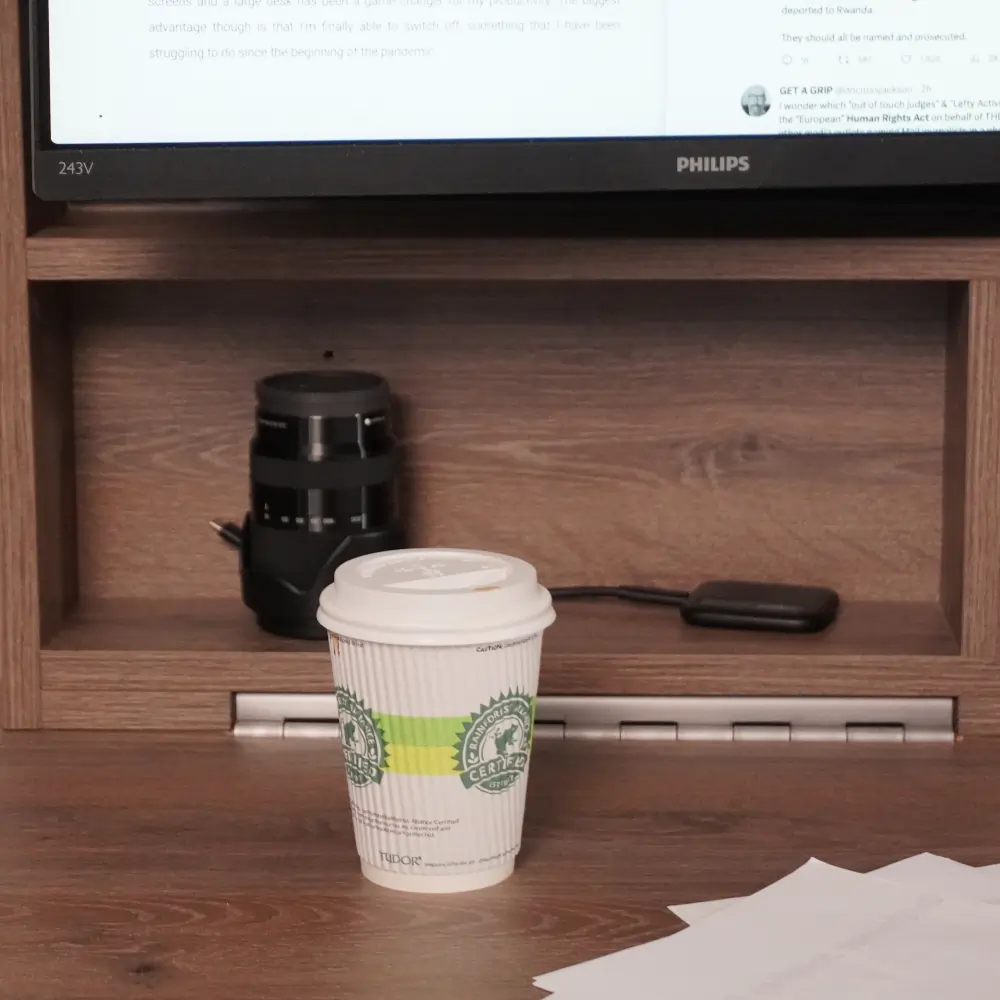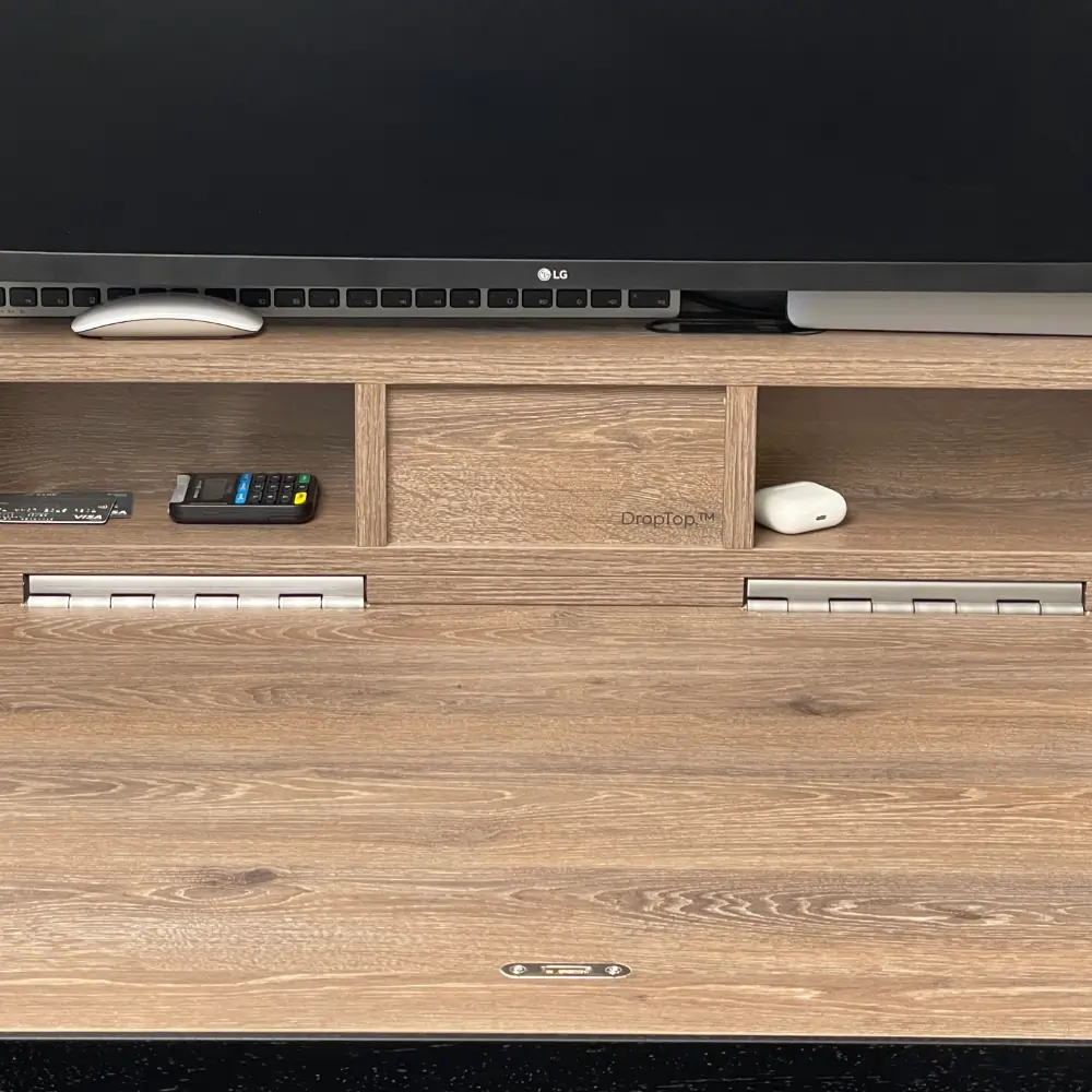 Storage and organisation in DropTop space saving desk.